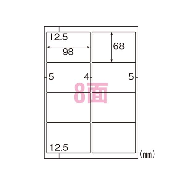 エコノミーラベル8面●規格:A4判8面●1片寸法:縦68×横98mm●紙種:上質紙●総紙厚:0.15mm