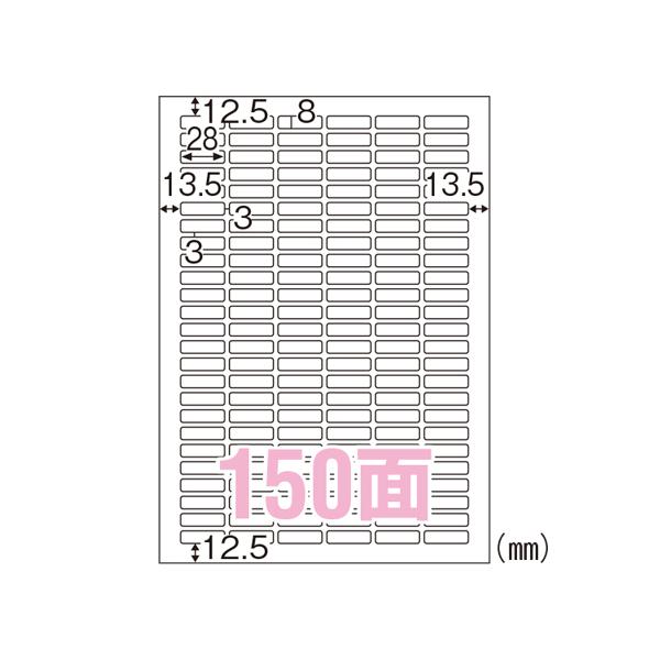 エコノミーラベル150面角丸●規格:A4判150面●1片寸法:縦8×横28mm●紙種:上質紙●総紙厚:0.15mm