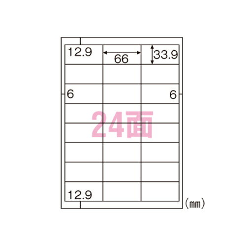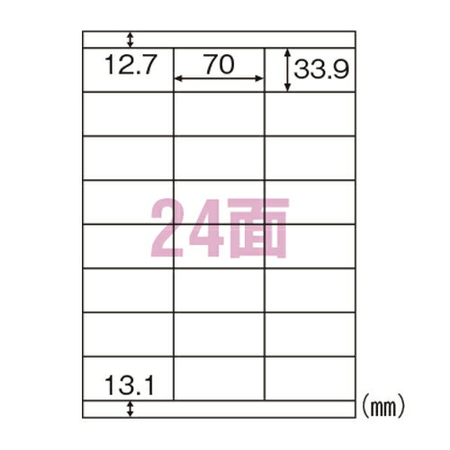 エコノミーラベル24面上下余白●規格:A4判24面●1片寸法:縦33.9×横70mm●紙種:上質紙●総紙厚:0.15mm