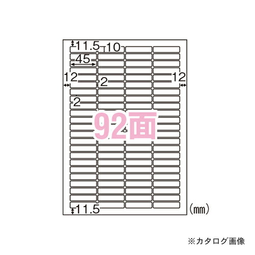 エコノミーラベル 92面 角丸 各種プリンタ(レーザ・インクジェット・コピー機)でマルチに印刷可能。 カラーレーザプリンタ、カラーコピー機にも対応しています。 連続給紙が可能なので、大量に印刷したい場合にも便利です。 その他のプリンタ用紙はこちらから 入数 100シート サイズ A4 210×297mm ラベルサイズ 45x10mm 坪量 144g/m2程度 紙厚 0.15mm 面付け 92面(4×23)