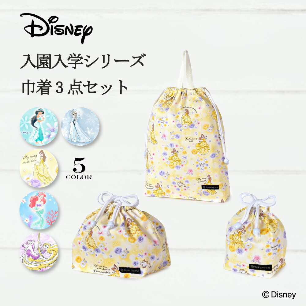 Disney 入園入学シリーズ 巾着3点セット ディズニー プリンセス ジャスミン アラジン エルサ ベル ラプンツェル アリエル 入園セット 入学セット 入園準備 入学準備 入園グッズ 巾着 体操服袋 お弁当袋 コップ袋 入園入学祝い 進学祝い
