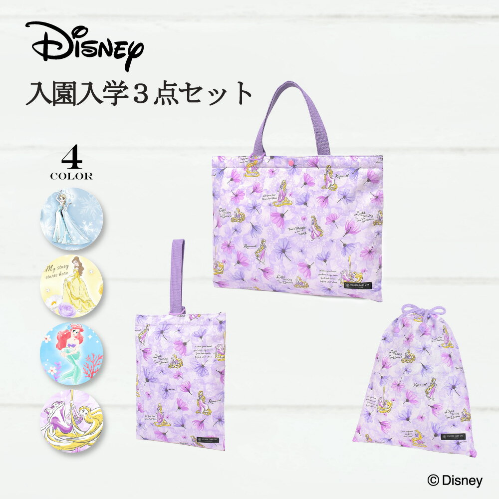 Disney 入園入学シリーズ バッグ 巾着 3点セット ディズニー プリンセス ジャスミン アラジン エルサ ベル ラプンツェル アリエル 入園セット 入学セット 入園準備 入学準備 入園グッズ レッスンバッグ シューズケース 体操服袋 入園入学祝い 進学祝い