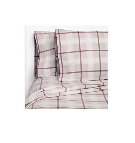 【中古】【未使用・未開封品】Member's Mark 綿100%フランネルシーツセット キング グレー レッド 格子縞デザイン