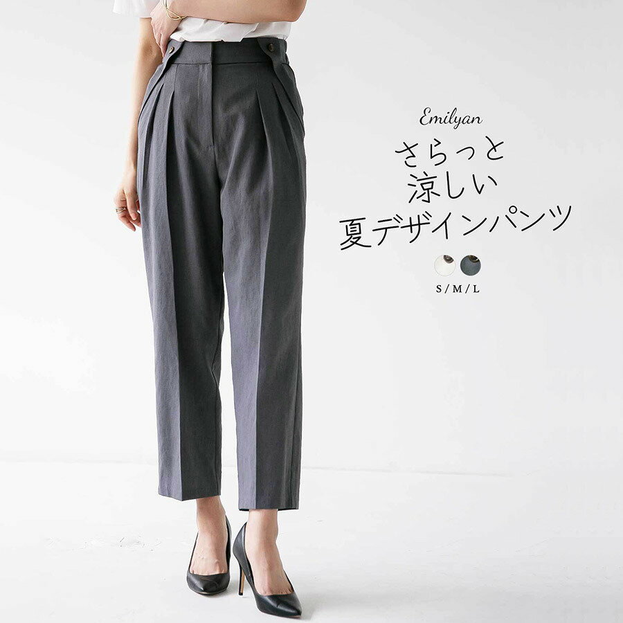 【さらっと涼しい夏デザインパンツ】WEB限定!手洗いOK!ラフリニークロス・タックテーパードパンツ/エミリアン(Emilyan)