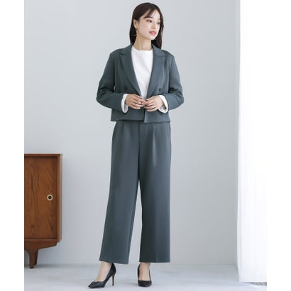 エミリアン Emilyan 無敵のダブルジャケットスーツ【洗濯機OK♪UVカット!全方位ストレッチ♪軽い着心地♪】ハイストレッチダンボールニット・ショート丈ダブルジャケット&ワイドパンツ