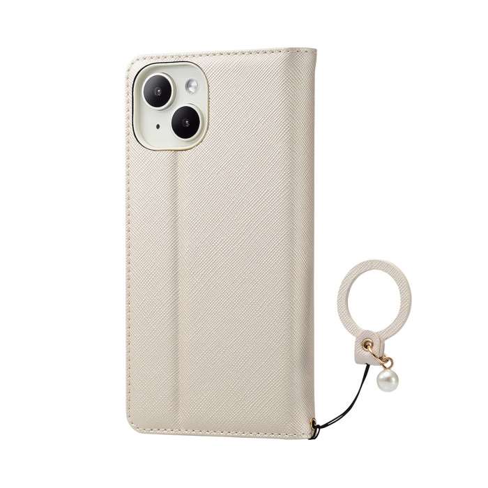 【商品説明】■もっと、自分だけの「好き」を選びたい。そんな想いに応えるアクセサリーで、お気に入りの毎日を。スマートデバイスと私をつなぐ、&meです。■目元や口元をチェックするのに便利なコンパクトミラーと、落下防止用のフィンガーストラップが付属した、手帳型ソフトレザーケースです。■不使用時に画面部分をカバーする、横開きタイプのフラップが付いています。■フラップの内側に、メモやカードなどが収納できるカードポケットが2つ付いています。カードを出し入れすることなく、そのままICカードを使用可能です。■※フラップを開いてご使用ください。■端末装着部分にはやわらかく丈夫で、衝撃も吸収するソフトケースを採用しています。■落下時に最も大きな衝撃が予想される四つ角にエアークッションを設置し、効率的に衝撃を吸収します。■かわいいフェイクパール付きデザインの、落下を防止するフィンガーストラップが付属しています。■背面を折り曲げることでスタンドとして使用でき、動画視聴などを快適に楽しめます。■ケースを装着したままで、各種ケーブルの接続や写真撮影、ボタンの操作が可能です。■自社環境認定基準を1つ以上満たし、『THINK ECOLOGY』マークを表示した製品です。■廃棄物削減に取り組み、製品に同梱する取扱説明書等をペーパーレス化した製品です。【仕様】■対応機種:iPhone 15■セット内容:ケース本体×1、フィンガーストラップ×1■材質:ケース本体:合成皮革・TPU(熱可塑性ポリウレタン)・磁石、ミラー:ガラス、フィンガーストラップ:合成皮革■カラー:ホワイト【発送予定について】表記の発送予定はあくまで目安です。メーカーの在庫状況によっては、さらにお時間をいただく場合がございます。