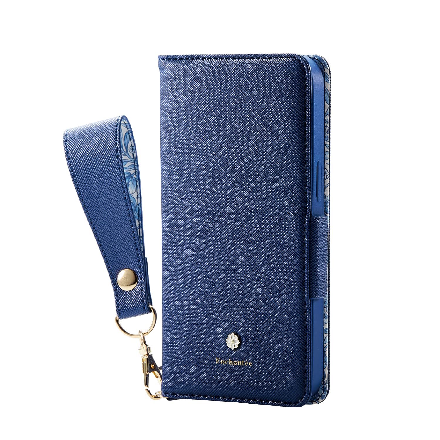 エレコム iPhone 13 2眼 レザーケース 手帳型 Enchantee 磁石付き ストラップ付き ネイビー PM-A21BPLFJM3NV