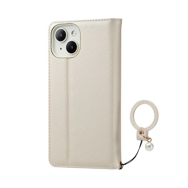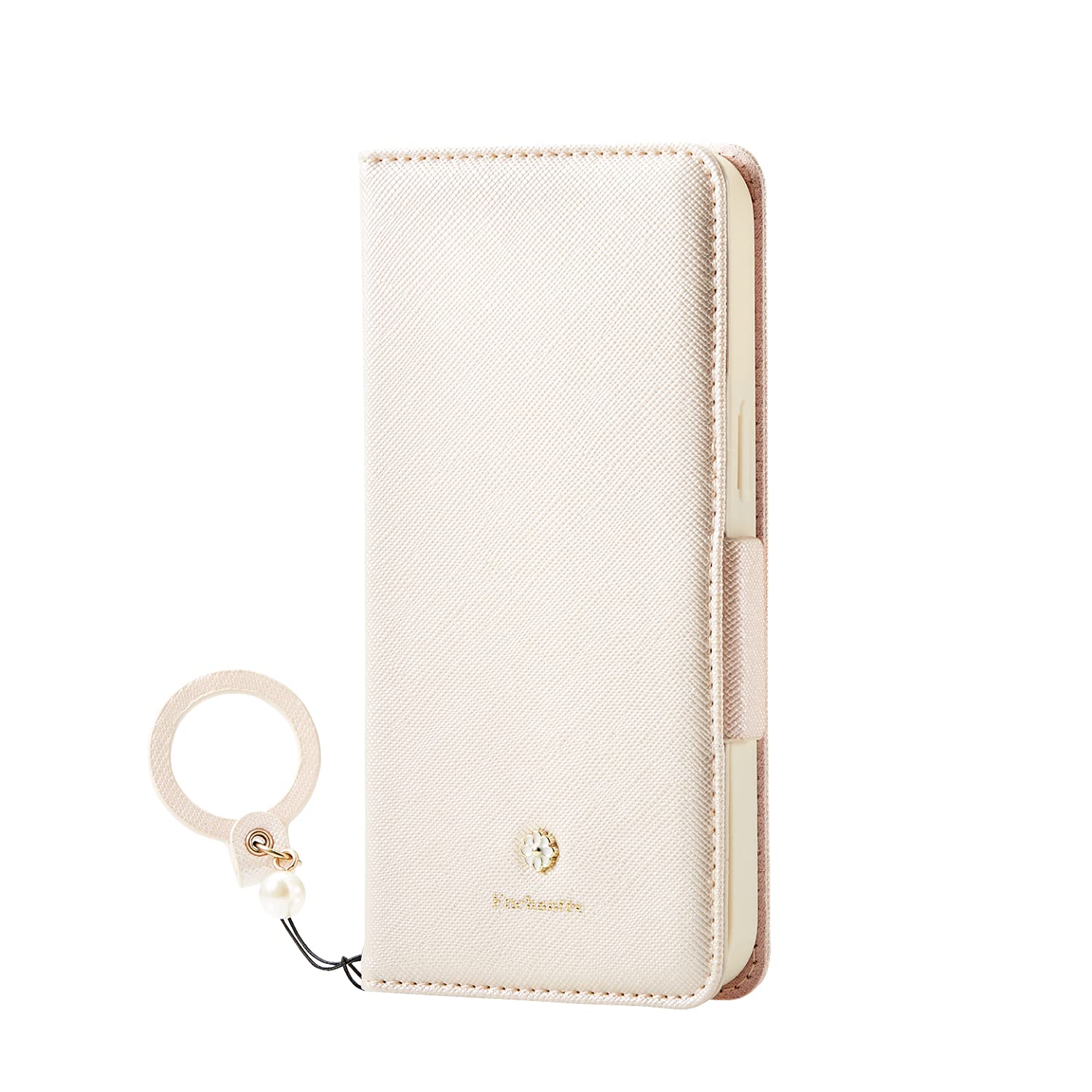 対応機種:iPhone13/iPhone14 ずっと好きでいられる、ベーシックな可愛さ。 フィンガーストラップ付きiPhone 13用ソフトレザーケース(手帳型)です。 フラップの内側に、目元や口元をちょっとチェックする時などに便利な程よいサイズのミラーが付いています。 可愛いパール付きの落下を防止するフィンガーストラップが付いています。