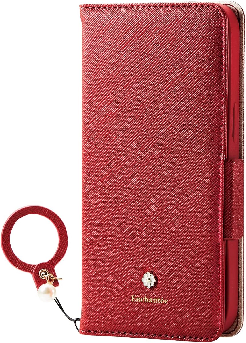 エレコム iPhone 13/レザーケース/手帳型/Enchantee/磁石付き/レッド
