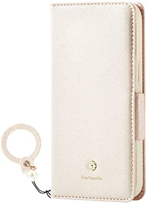 ELECOM(エレコム) iPhone 15 用 ケース レザー カバー 手帳型 マグネット フラップ 衝撃吸収 フィンガーストラップ付 スタンド機能付 ミラー付 &me Enchantee ホワイト PM-A23APLFJM2WH