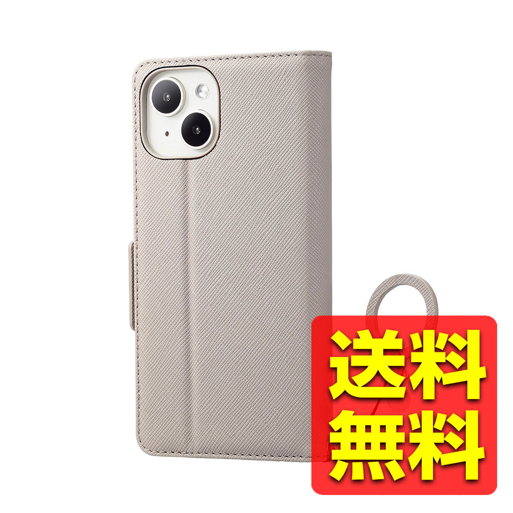 iPhone 15 用 ケース レザー カバー 手帳型 マグネット フラップ 衝撃吸収 フィンガーストラップ付 スタンド機能付 ミラー付 &me Enchantee グレージュ PM-A23APLFJM2GB / ELECOM エレコム 【送料無料】