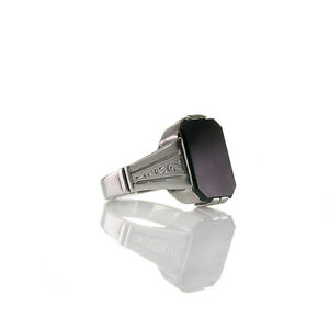 【送料無料】ジュエリー・アクセサリー アールデコシールシルバーリングサイドオーナメントオニクスオタゴンantico arte deco sigillo anello argento 835 laterali ornamenti e ottagono onice