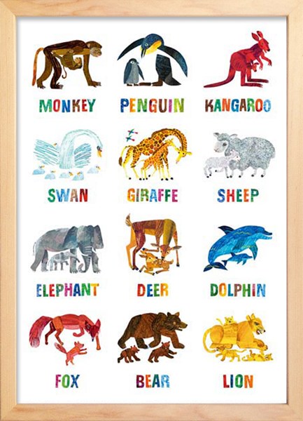お部屋やオフィス、お店のおしゃれなインテリアに…インテリアアート お洒落 リビング 玄関 部屋 プレゼント デザイン雑貨ベストセラー絵本「はらぺこあおむし」が代表作として知られる絵本作家エリック カールのポスターです。彼のイラストは独創的かつ特徴的なコラージュ技法で描かれます。彼自身が彩色した紙を切り取り、重ね、組み合すことで、思いがけなく複雑で鮮やかな色彩を生み出します。サイズ:約280x387x17mm重量:約1100g素材:天然木/ガラス/MDF/紙[Made in Japan][お取り寄せ]こちらの商品はお取り寄せ商品です。約3日-10日の日数をご了承下さい。