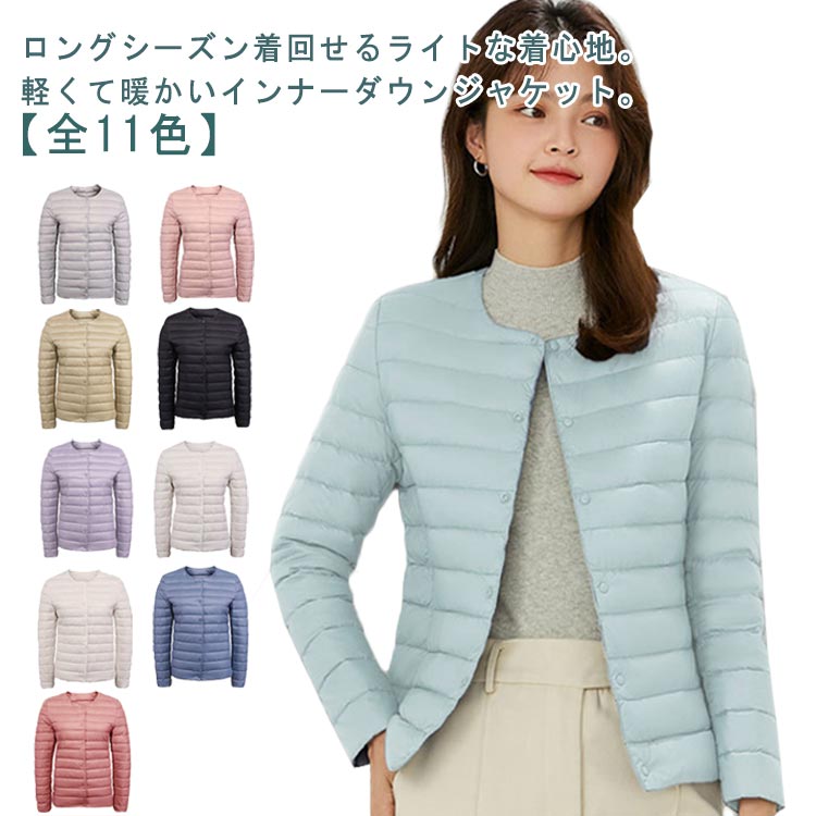 インナー ダウンジャケット レディース ライトダウン インナーダウン ジャケット Vネック クルーネック ショート丈 軽量 薄手 防寒 保温 あたっか ダウン ノーカラージャケット アウター 上着 春 秋 冬 大きいサイズ 30代 40代 50代 60代 シンプル 【送無】