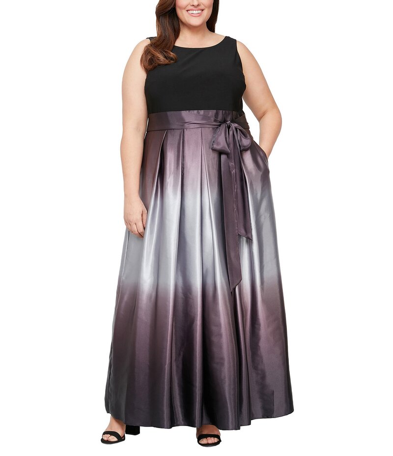 イグナイト レディース トップス ワンピース プラスサイズ サテン ノースリーブ Ignite Evenings Plus Size Boat Neck Ombre Satin Bow Sleeveless Gown Black/Silver ブラック