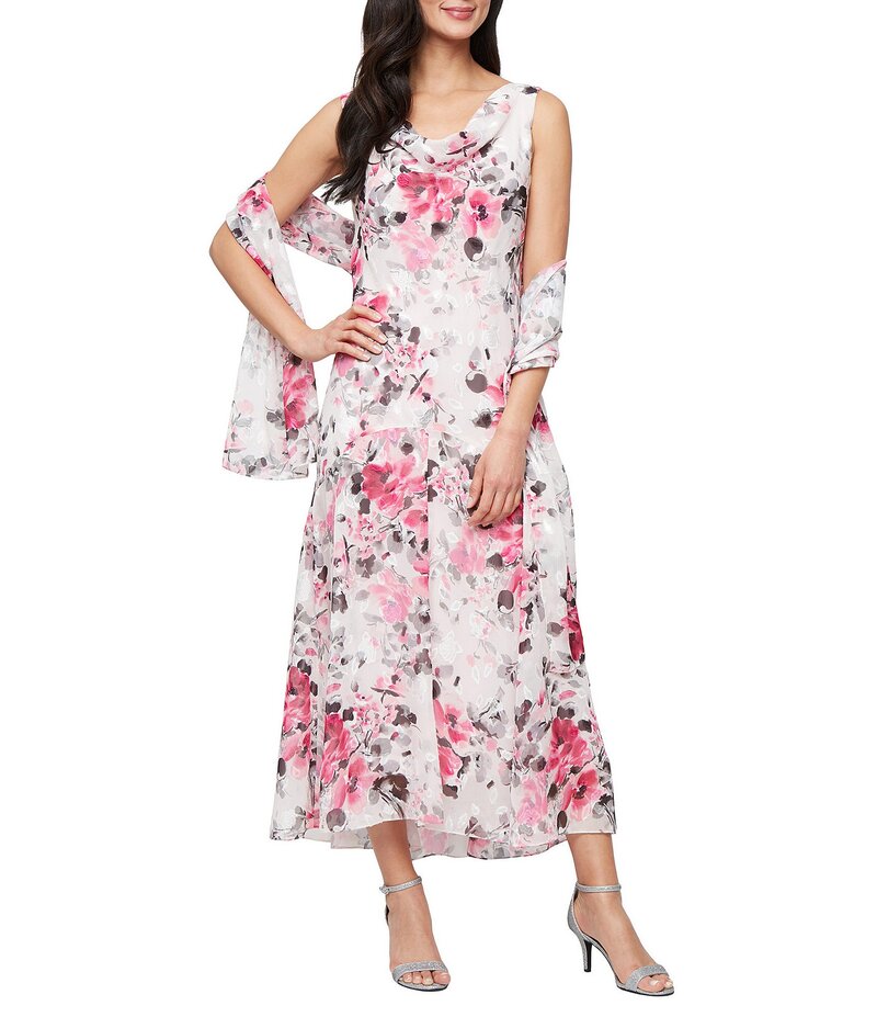 アレックスイブニングス レディース トップス ワンピース シフォン フラワー柄 プリント フラワー Alex Evenings Chiffon Floral Print High-Low Hem Slip Dress Fuchsia Multi フューシャ