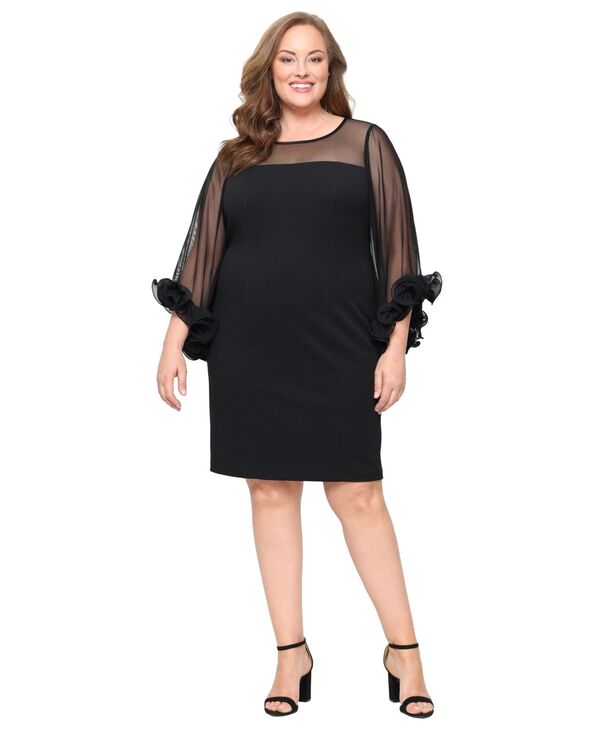 アレックスイブニングス レディース トップス ワンピース プラスサイズ フリル Alex Evenings Plus Size Round Neck 3/4 Sleeve Embellished Illusion Ruffle Sheath Dress Black ブラック