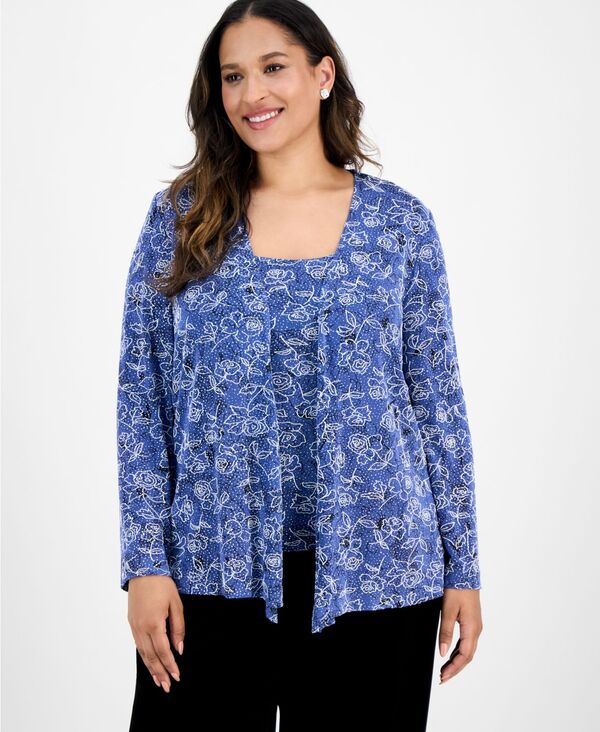 アレックスイブニングス レディース トップス シャツ プラスサイズ プリント ジャケット Alex Evenings Plus Size Printed Tank Top & Jacket Set Wedgewood