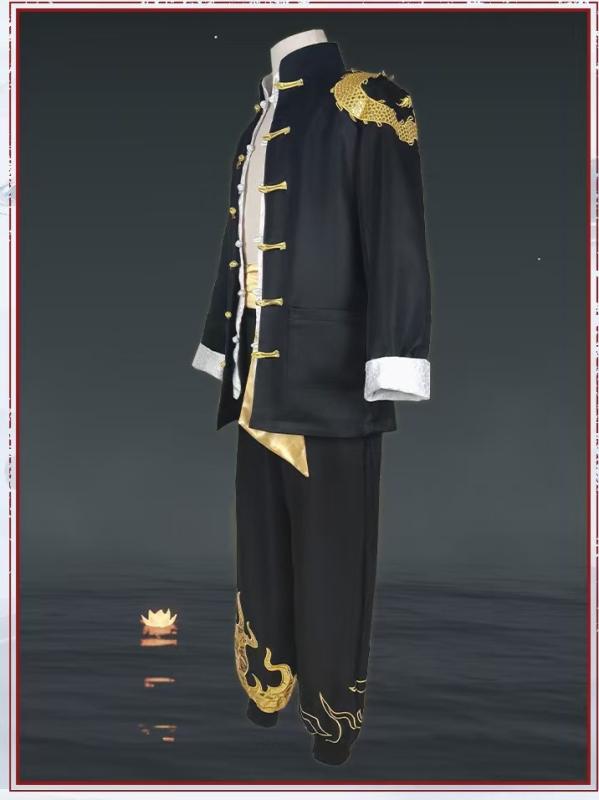 メンズ 唐装 ジャケット 中山服 龍刺繍 チャイナ風 コート 男性用 再生繊維 シェニール織 ブラック S M L XL XXL XXXL