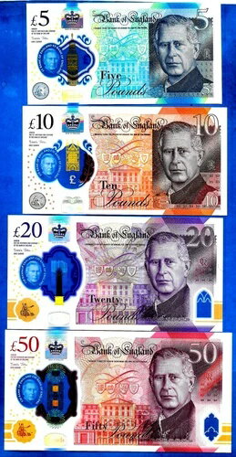 イングランド国王チャールズ3世 新紙幣 フルセット 5ポンド、10ポンド、20ポンド、50ポンド 2024年 ミント UNC