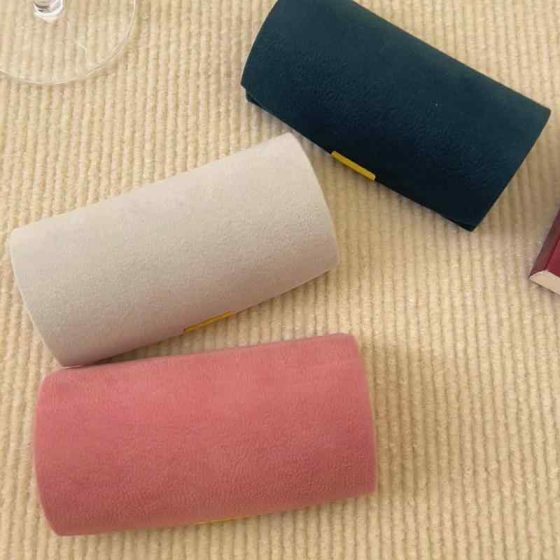 ジュエリーケース トラベル 起毛 無地 ラグジュアリー 灰 桃 ネイビー ボタン 収納 保管 持ち運び ネックレス ポータブル ボックス 指輪 イヤリング アクセサリー 旅行 女性 シンプル 大人 きれいめ
