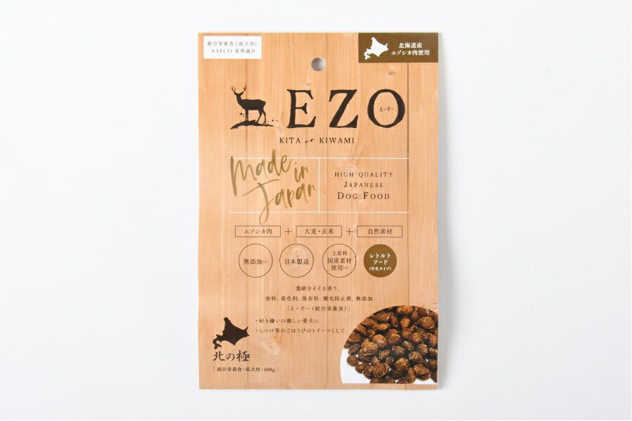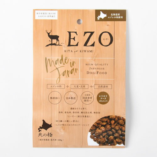 【北の極】 ドッグフード エゾ鹿 EZO エーゾー(犬の一般食 成犬用)100g無添加 国産 エゾシカ肉 玄米 国産野菜等を使用 ドックフード 小粒 愛犬用フード アレルギー対策 安心安全 犬用 ご褒美 ギフト