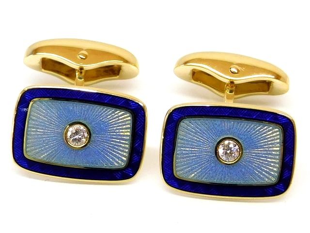 新品同様品 FABERGE ファベルジェ K18 イエローゴールド ■ カフス ダイヤ 0.06ct ×2 メンズ ビジネス □7B7C