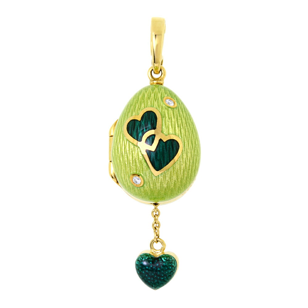 [中古] ファベルジェ イースターエッグ ハート ロケット ペンダントトップ K18YG ダイヤモンド ギョーシェ エナメル チャーム FABERGE