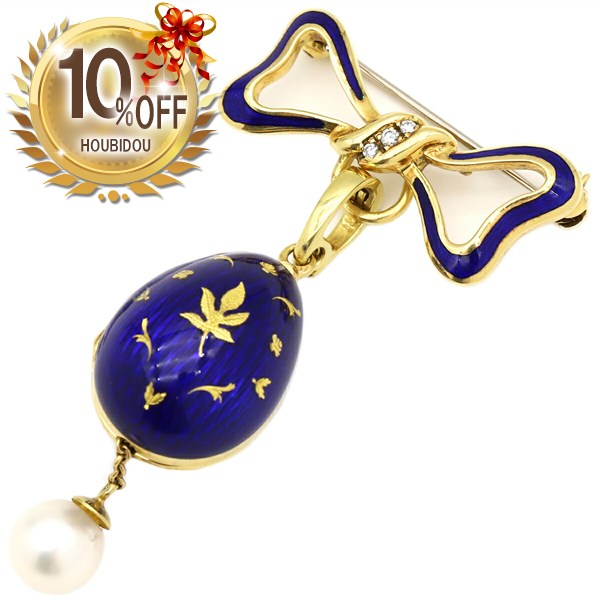 \10%OFFセール/ FABERGE ファベルジェ ブローチ イースターエッグ チャーム K18YG エナメル パール ダイヤモンド イエローゴールド【中古】