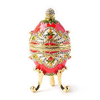 【中古】【輸入品・未使用】Hand- Painted Vintage Style Royal Faberge Egg with Rich Enamel and Sparkling Rhinestones Jewelry Trinket Box (RED)