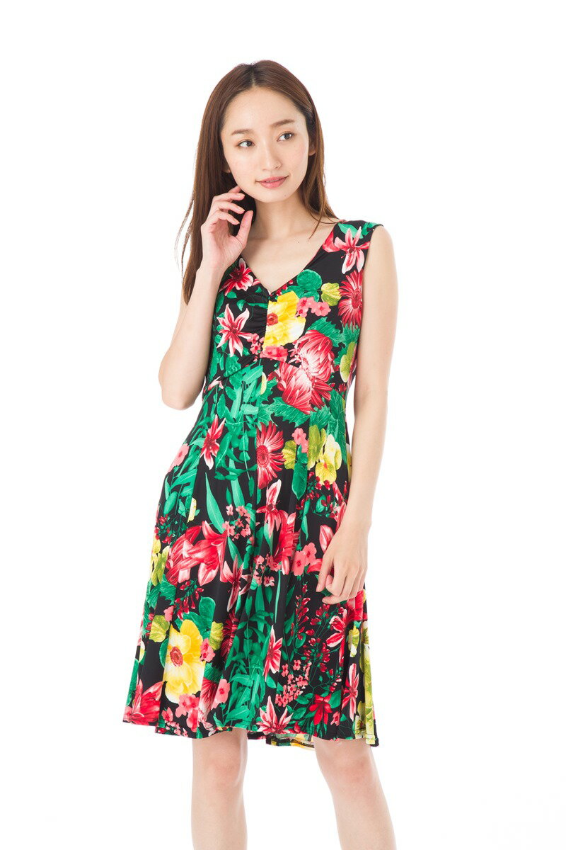 【SALE】メール便送料込 stellar ファス(FAS)ワンピース T2 T3 T4サイズ ノースリーブ Vネック 花柄 大人 レディース 上品 ジャージー