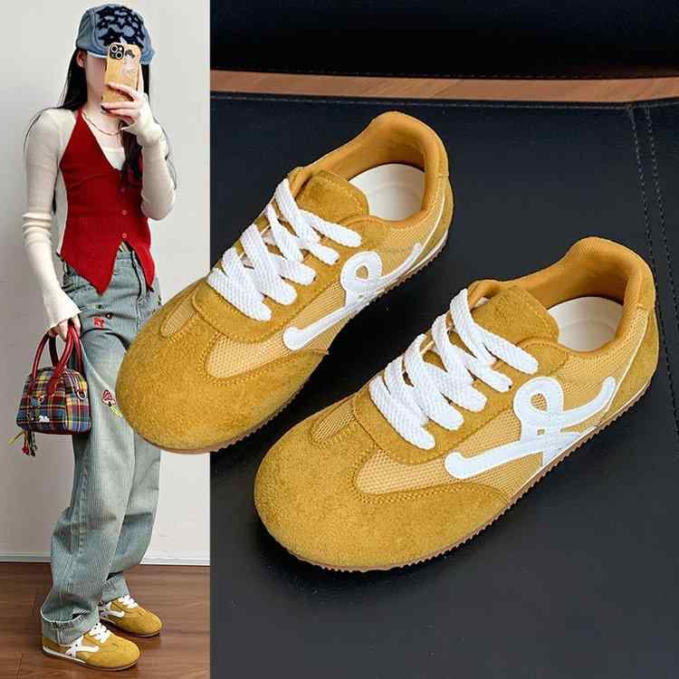 スニーカー レディース 通気性 メッシュ カジュアル スポーツ シューズ 靴 黄色 ベージュ 婦人靴 学生 人工皮革 ゴム底(x2)