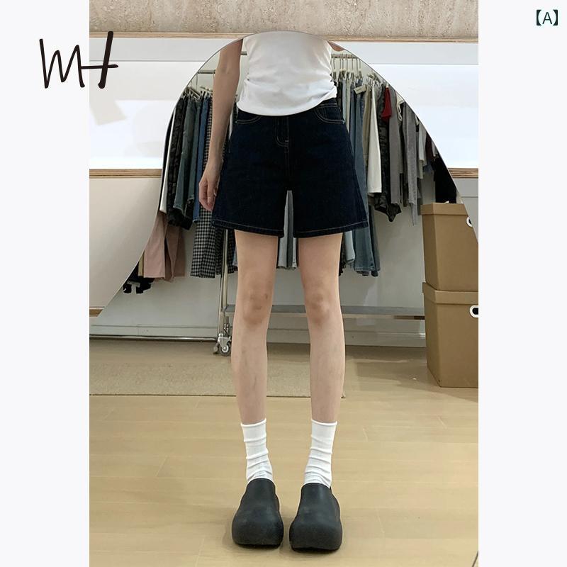 aライン ヒップ ショートパンツ アメリカン レトロ ダーク ブルー デニムショートパンツ レディース 2025 夏小 5点 ストレート チューブ スリム 4点 パンツ