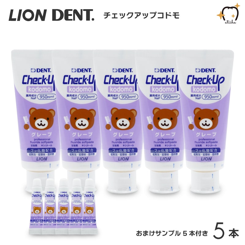 【送料無料一部除く】LION ライオン 歯磨き粉 950ppmF Check-Up kodomo チェックアップコドモ 60g グレープ【5本】 おまけサンプル5g【5本】
