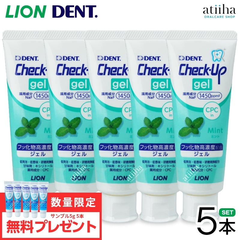【送料無料一部除く】LION ライオン 歯磨き粉 1450ppmF Check-Up gel チェックアップジェル 75g ミント【5本】おまけサンプル5g【5本】 ハミガキジェル