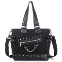 [Round Studs HandCuff Charm Canvas Shoulder Bag] ラウンド・スタッズ・ハンドカフ・チャーム・キャンバス・ショルダーバッグ! ブラック 黒 ボストンバッグ ハンドバッグ パンク ゴシック 大容量 斜め掛け クロスボディ ダブルベルト 手錠 バイクに!