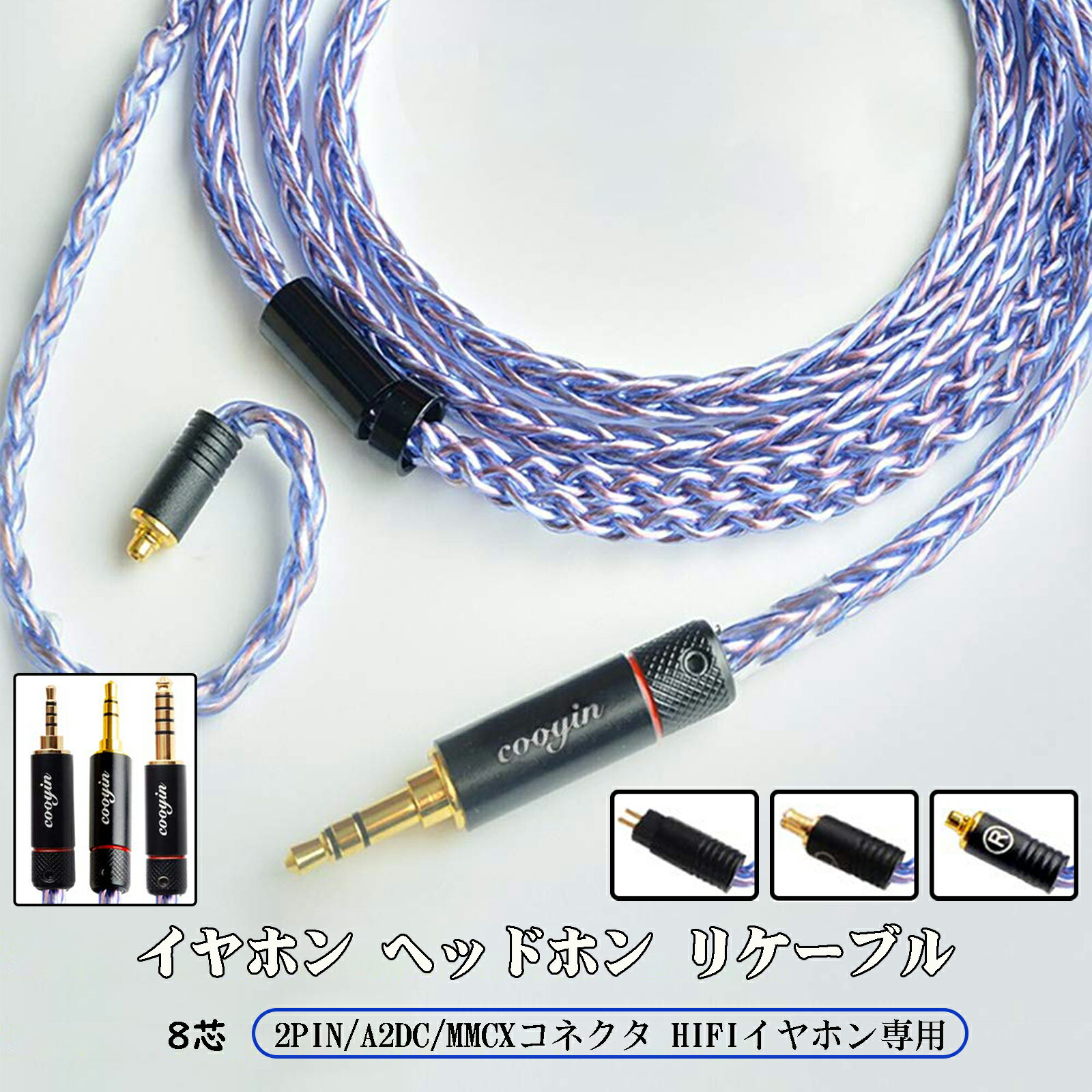 cooyin リケーブル MMCX A2DC 2pin ケーブル HIFI 音質イヤホン アップグレードケーブル 単結晶銅+銀メッキ単結晶銅 8芯 PVC外被 タッチノイズならず SHURE SE215 SE535 FiiO FH1 F9 F9PRO FH5 E40 E70 LS50IS LS70IS LS200IS LS300IS CKR100IS KZ ZST ZS10 ZSR ZS7等に対応