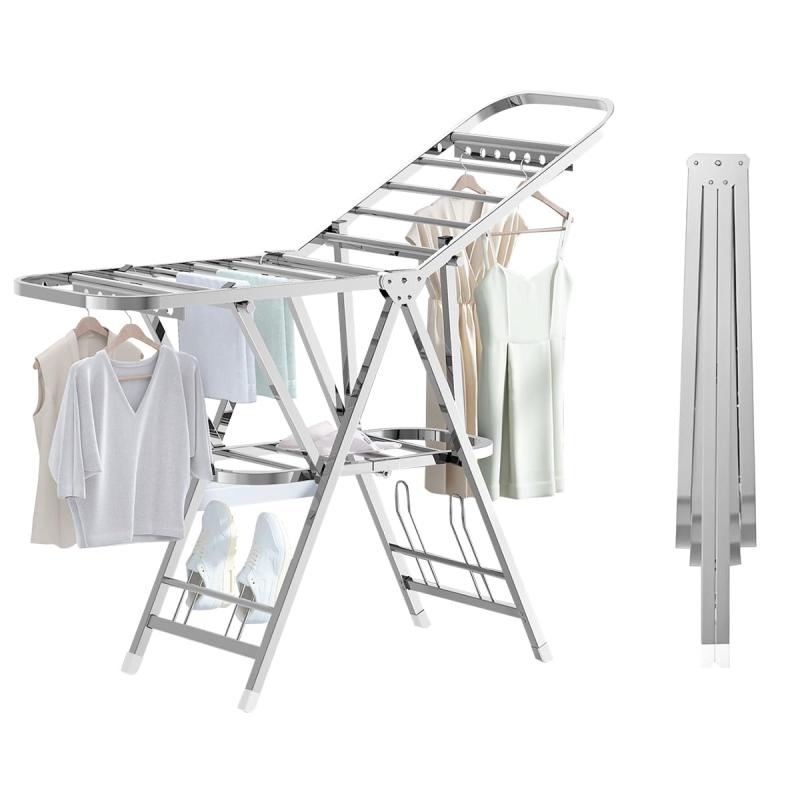 Aikenn 物干しスタンド 物干しラック 物干し竿 洗濯物干し 布団干し 室内 屋外 ベランダ コンパクト 洗濯干し台 高さ調節 折り畳み式 キャスター付き 靴掛け付き 組立不要 物干しハンガー タ