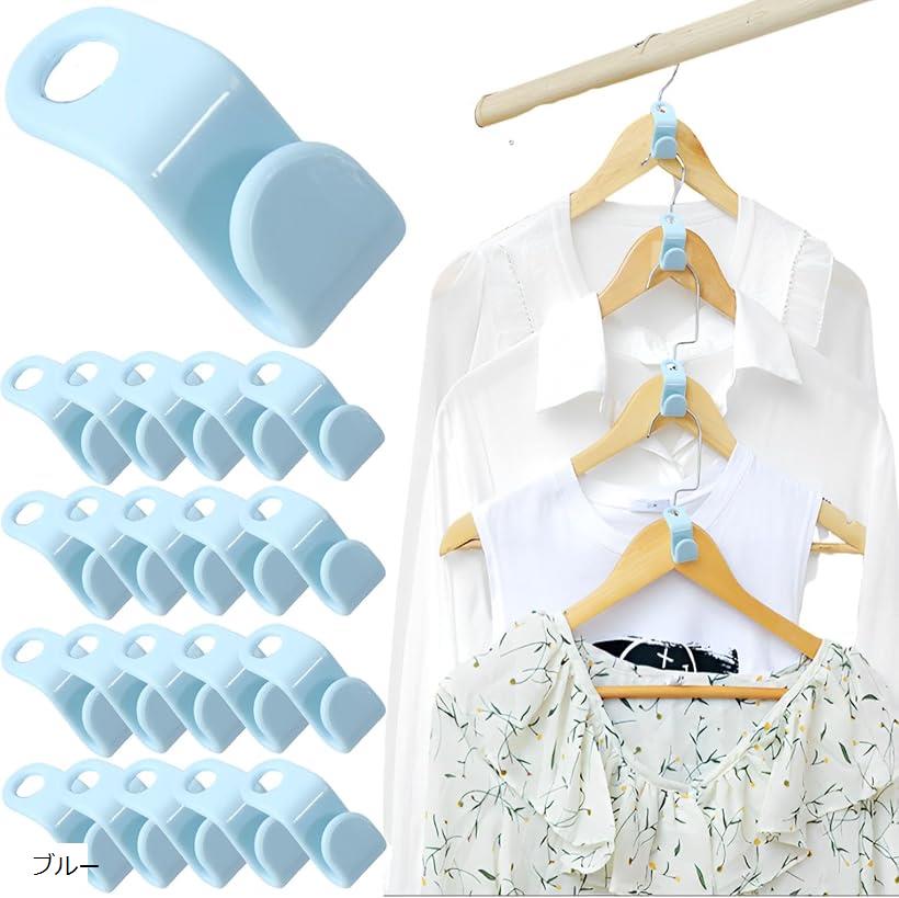 ハンガー連結フック 整理整頓 省スペース クローゼット ジョイントフック 50個セット ブルー (ブルー, 1.8 x 4 cm)