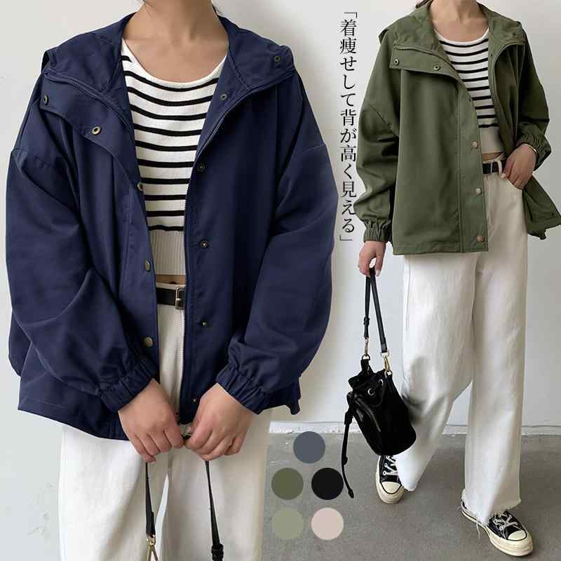 ジャケット レディース ゆったり ショート丈 ポリエステル アウター カジュアル ワークテイスト ブルゾン ミリタリーテイスト 深緑 ライトグリーン ブラック ベージュ グレー ネイビー 無地 長袖 ハーフハイネック