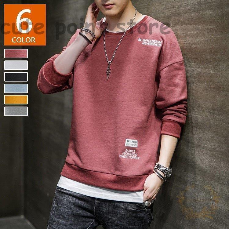 スウェットトレーナー メンズ 春服 春物 長袖Tシャツ クルーネック 英文字 刺繍トレーナー プルオーバートレーナー 韓国ファッション カジュアルトップス