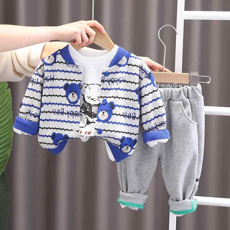 ベビー キッズ 男の子 パンツ セットアップ 春秋 長袖 綿 韓国 おしゃれ カジュアル くま柄 三点セット 通園 お出かけ
