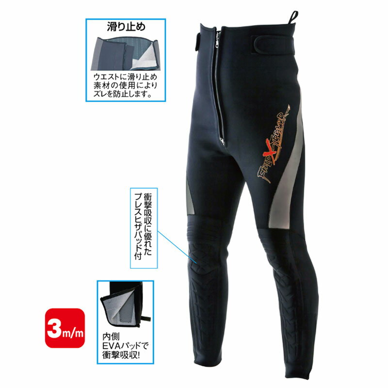 仕様/規格●素材:ジャージ+CRスポンジ(3mm厚)+パイル●※適応サイズはサイズ表一覧の画像をご覧ください。●カラー:ブラック商品説明●ウエスト背面の内側はエンボス加工でズレを防止、肌側素材に着心地抜群のパイルジャージ使用、前Wファスナー、足首ファスナーで着脱ラクラク衝撃吸収に優れたプレスヒザパッド付、ファスナーのズリ上がりを防ぐファスナーストッパー商品属性●カラー:[ ブラック系 ]関連ワード●釣り具 釣具 つり具 鮎釣り 川釣り 渓流ジャンル識別情報:/g1012/g204/g303/mK46/※納期表示のご説明はこちら
