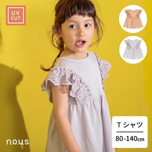 【FINAL SALE 60%OFF】n.o.u.s (ノウズ ) Tシャツ(半袖) (80〜140cm) 女の子 80cm 90cm 100cm 110cm 120cm 130cm 140cm キムラタン 子供服 本体綿100%| 半袖 キッズ 入園 夏物 服 女の子 おしゃれ トレンド トップス フリル 無地 UVカット さらさら