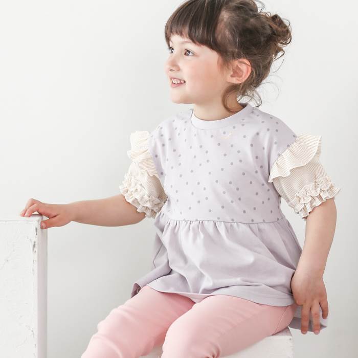 【FINAL SALE 70%OFF】n.o.u.s (ノウズ ) Tシャツ(半袖) (80〜140cm) 女の子 80cm 90cm 100cm 110cm 120cm 130cm 140cm キムラタン 子供服 本体綿100% 半袖 キッズ 通園 通学 夏物 服 ガールズ おしゃれ かわいい トップス フリル UV コットン ドット