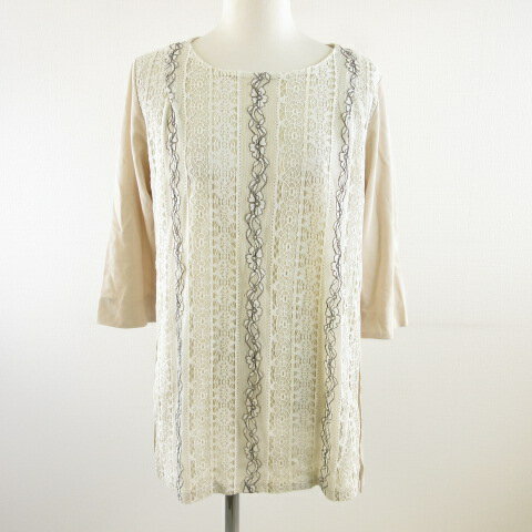 【中古】ダリュ リファインド Da'lux Refind カットソー 七分袖 レース ベージュ M *T69 レディース 【ベクトル 古着】 230727