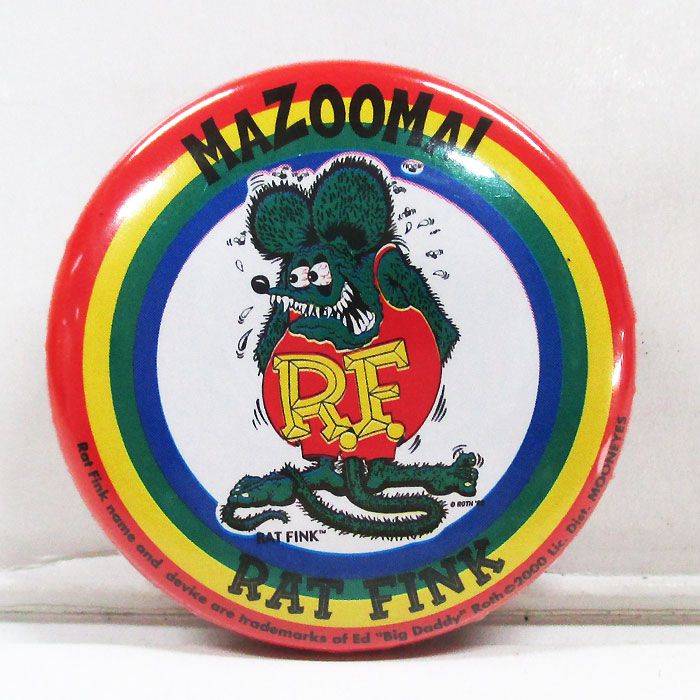 ラットフィンクの缶バッジが新入荷☆ 鞄やキャップ、ジャケット等好きな所に付けてポイントに♪ プレゼントのプラスアルファにもおススメ(*ꆤ.̫ꆤ*) サイズ:約3センチ 未使用品ですが、多少の経年劣化が生じている可能性がございます。 光りの加減により色味が異なる場合がございます。 また、店舗との共同販売の為、 ご注文を受け付けましてもお買い求めできない場合がございます。 予めご了承くださいませ。