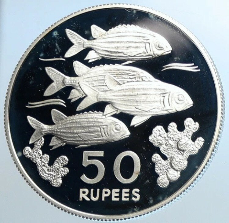 1978年 セイシェル 英国保護 リス魚 プルーフシルバー 50ルピーコイン i108492
