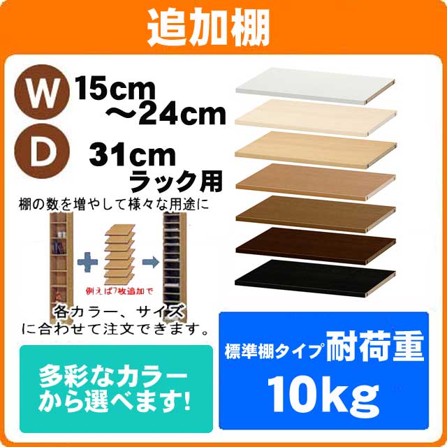 (ブラックフライデー)専用追加棚(標準)幅15〜24cm奥行31cm 本体サイズ用 日本製 オーダーラック(追加棚のみのご注文は+900円(梱包代)) 書棚 収納棚 カラーボックス ラック オーダーラック。収納・収納家具・本収納・収納