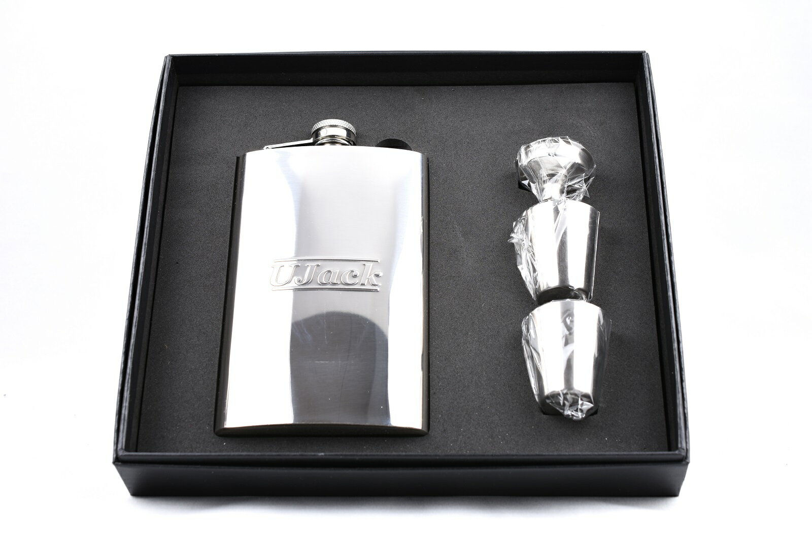 UJack(ユージャック) スキットル 304 ステンレス製 角形 鏡面タイプ 10oz 4点セット ギフト ウイスキーボトル ウィスキーボトル フラスク フラスコ ヒップフラスク ヒップフラスコ 角型